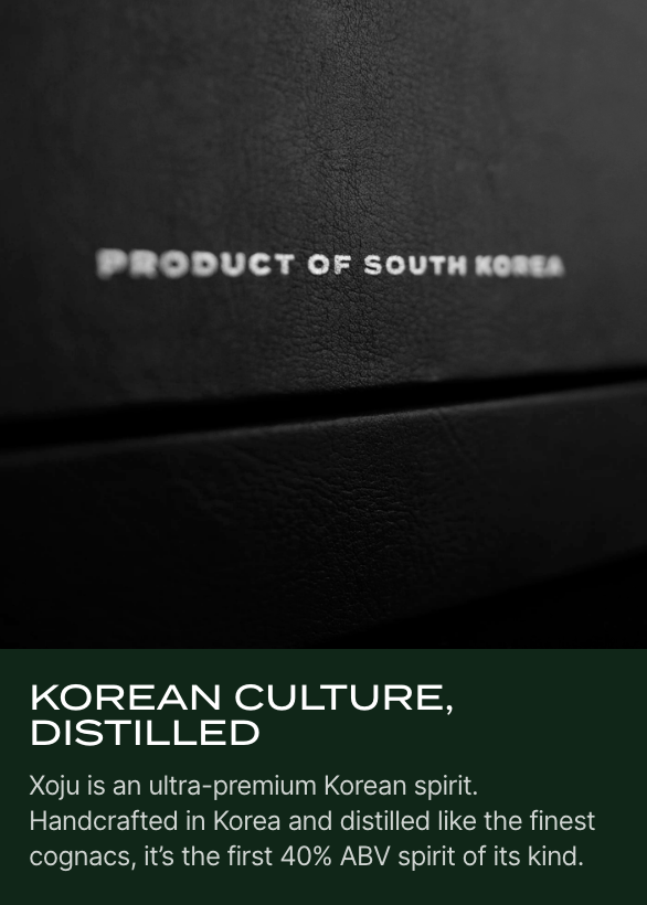 About Xoju: An ultra-premium Korean spirit (40% ABV) made from handpicked apples and distilled like the finest cognacs